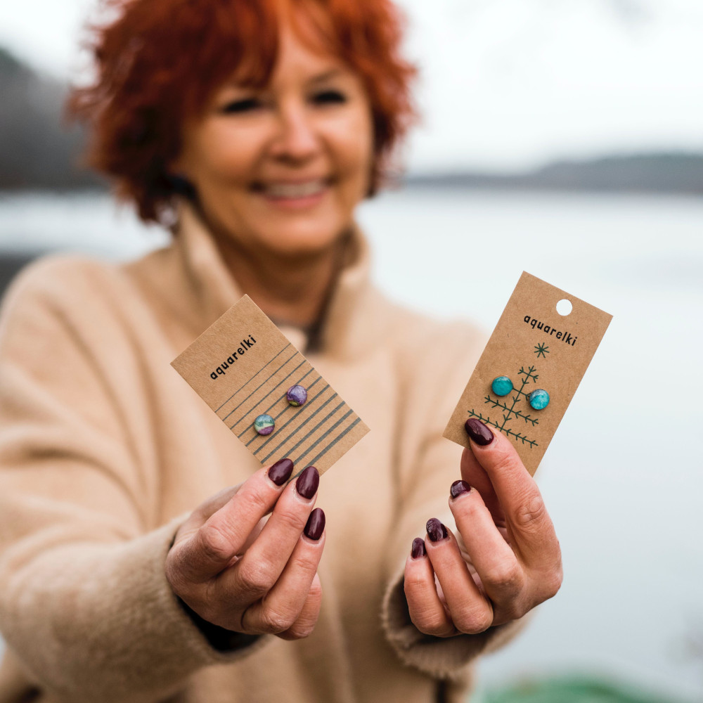 Nie szukaj dwóch identycznych kolczyków - to próżny trud. Każda Aquarelka jest inna, chociaż pasują do siebie. Jak siostry, ale nie bliźniaczki