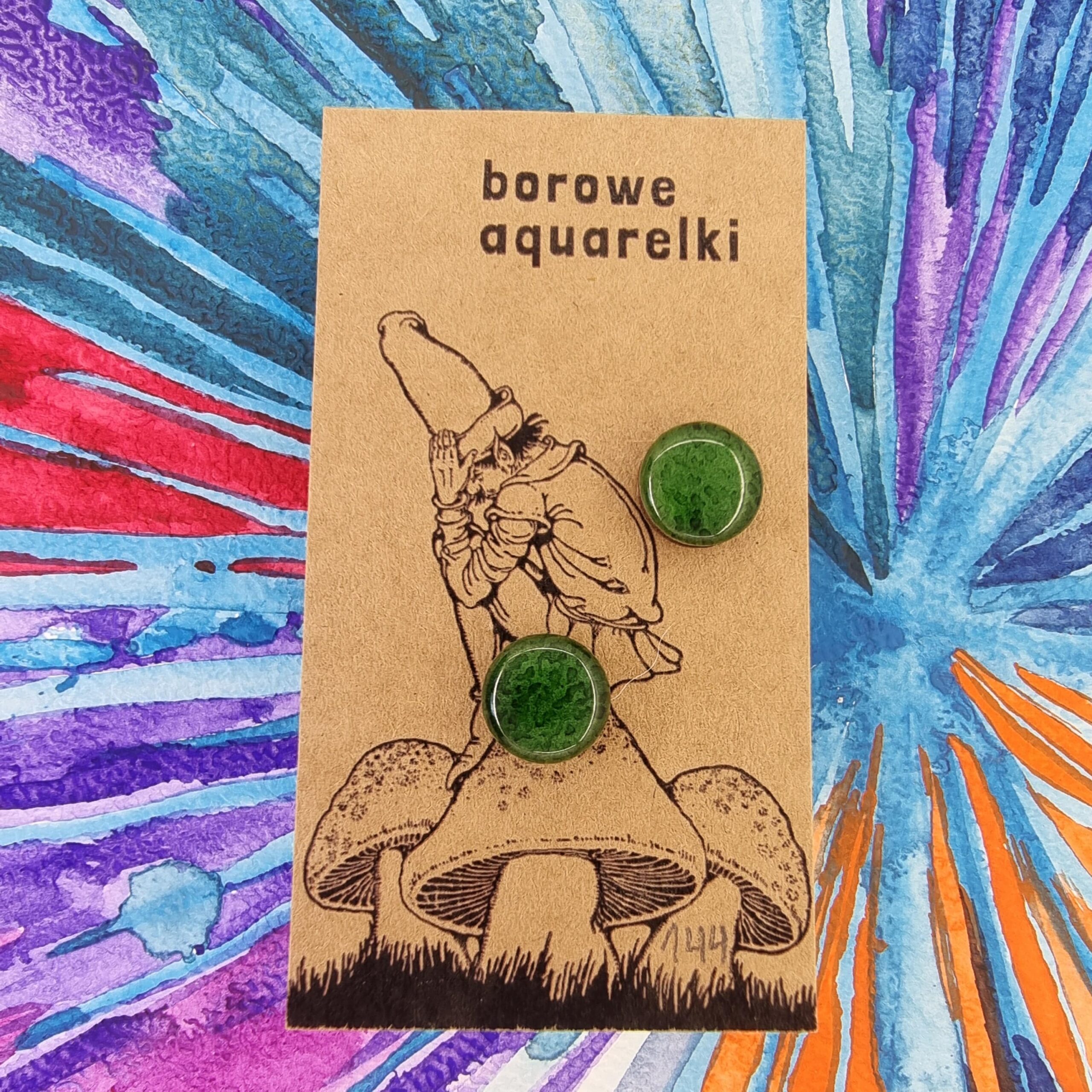 Ręcznie robione kolczyki Aquarelki w kształcie kółek o średnicy 12 mm. Wykonane z oryginalnych prac akwarelowych, utrwalone żywicą epoksydową, na sztyftach ze stali chirurgicznej.