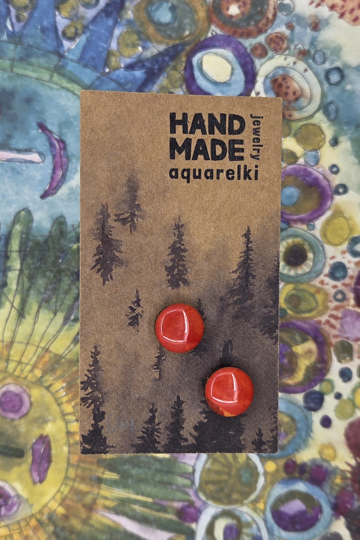 Ręcznie robione kolczyki Aquarelki w kształcie kółek o średnicy 12 mm. Wykonane z oryginalnych prac akwarelowych, utrwalone żywicą epoksydową, na sztyftach ze stali chirurgicznej.