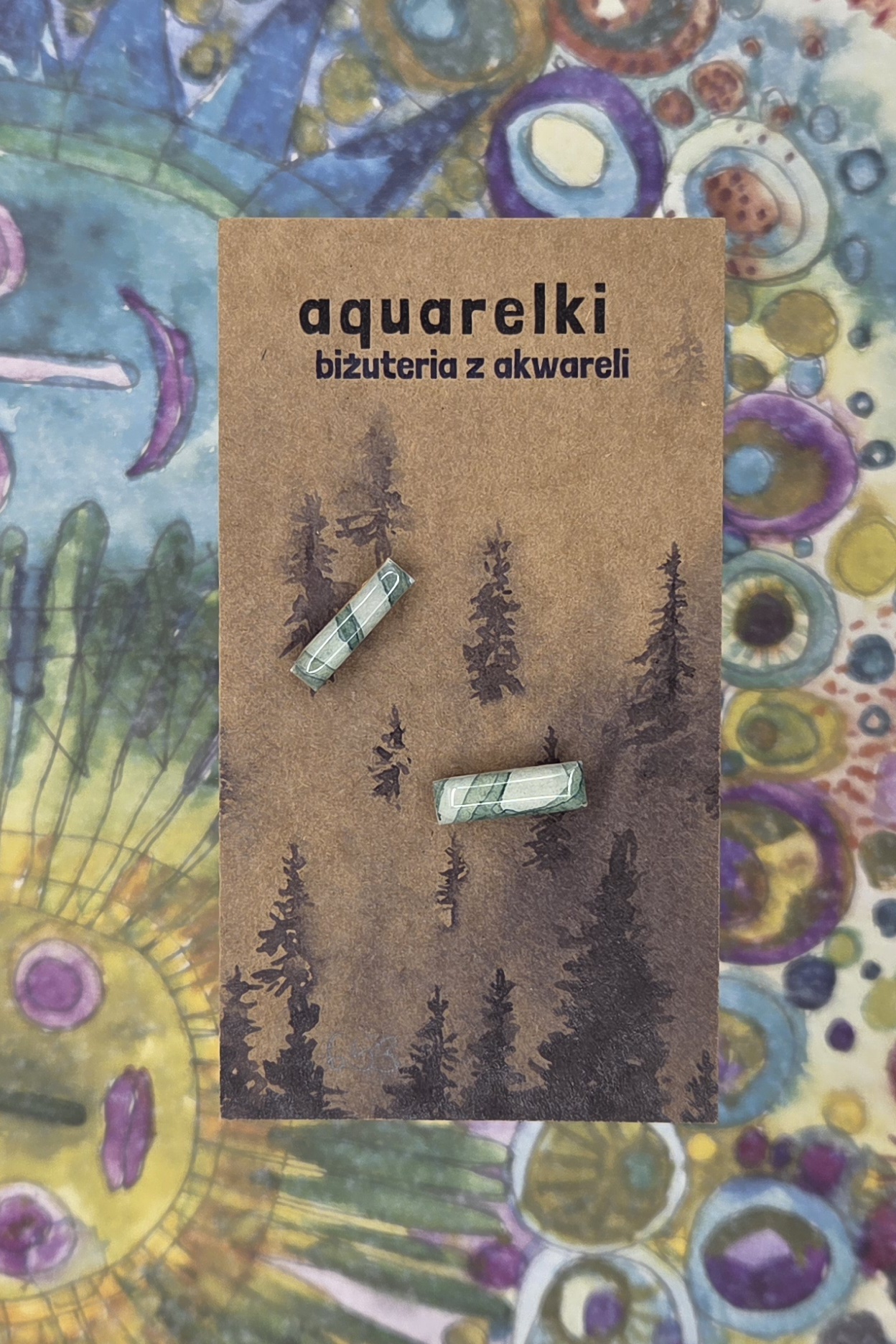 Ręcznie robione kolczyki Aquarelki. Wykonane z oryginalnych prac akwarelowych, utrwalone żywicą epoksydową, na sztyftach ze stali chirurgicznej.