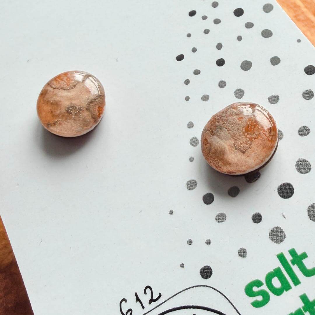 Ręcznie robione kolczyki Aquarelki w kształcie kółek o średnicy 10 mm. Wykonane z oryginalnych prac akwarelowych, utrwalone żywicą epoksydową, na sztyftach ze stali chirurgicznej. Małe dzieła sztuki, które powstały z połączenia wody, farby i soli.