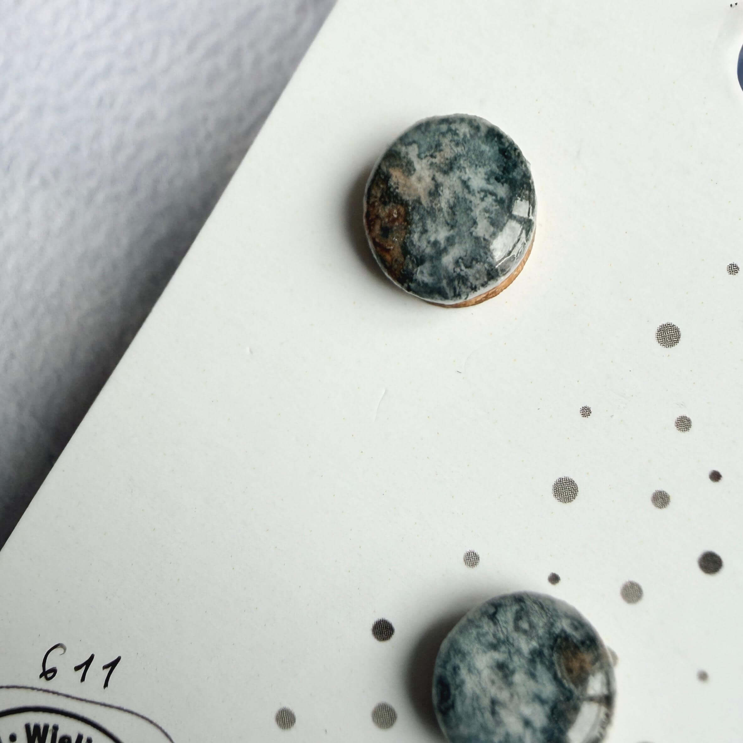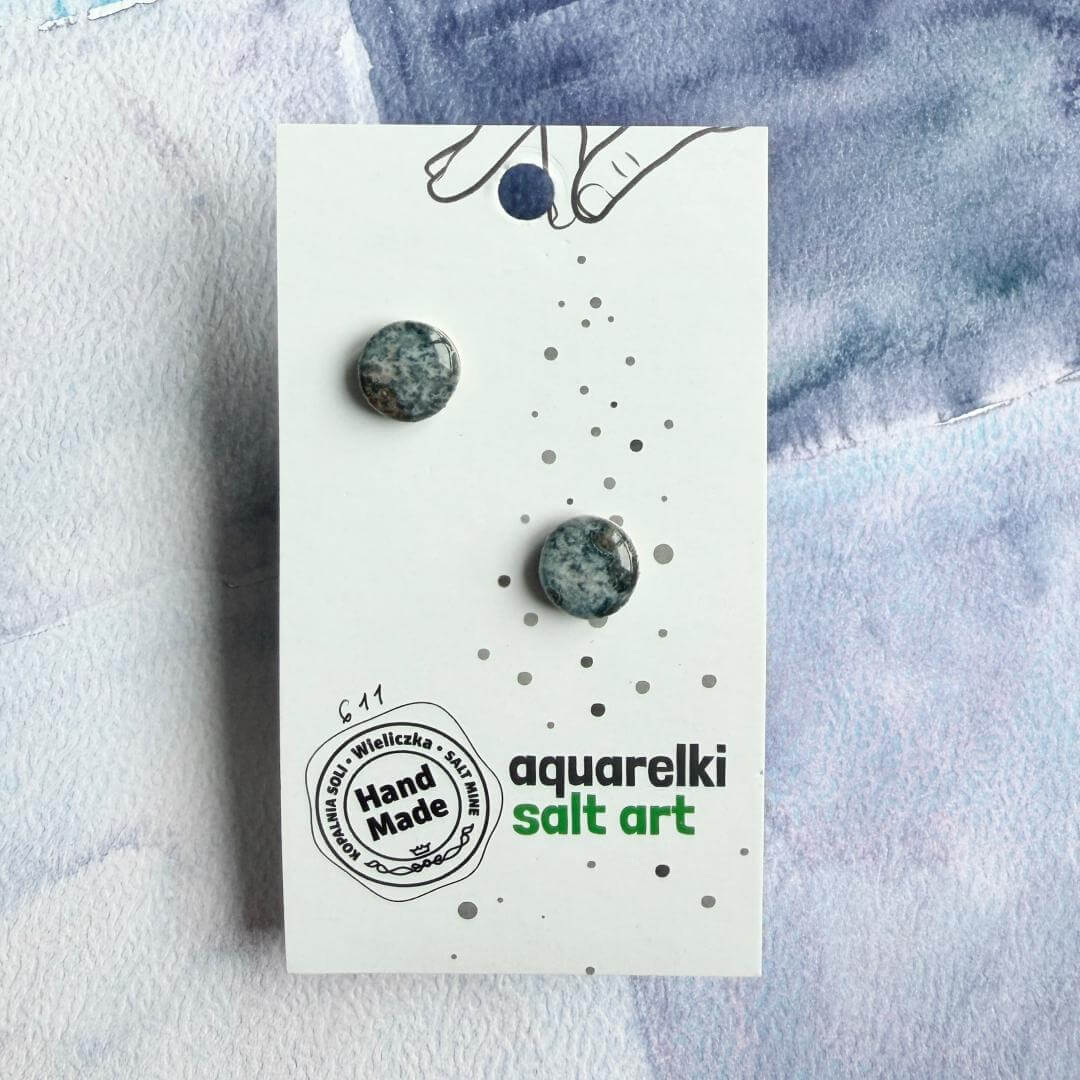 Ręcznie robione kolczyki Aquarelki w kształcie kółek o średnicy 10 mm. Wykonane z oryginalnych prac akwarelowych, utrwalone żywicą epoksydową, na sztyftach ze stali chirurgicznej. Małe dzieła sztuki, które powstały z połączenia wody, farby i soli.